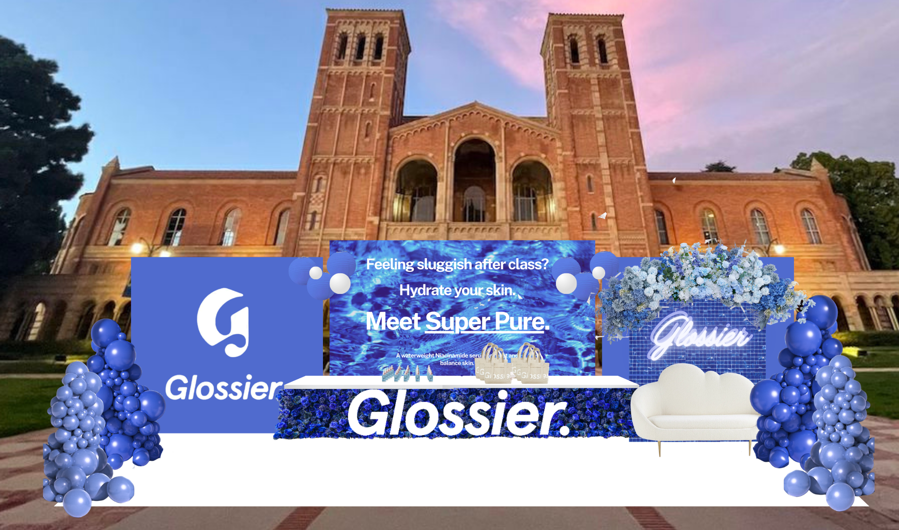 By placing the pop-up directly on campus and designing it to be quick, approachable, and visually engaging, it naturally attracts foot traffic without feeling intrusive. At the same time, it creates a low-pressure entry point into the product. Rather than asking students to go out of their way to shop for skincare, it brings the experience to them at a moment when they are more likely to engage. The act of trying the product, combined with the immediate feeling of refresh, builds a stronger connection than traditional advertising. It also encourages organic word-of-mouth, as positive, in-the-moment experiences are more likely to be shared. Already in their biggest demographic, college students are one of the highest consumers of Glossier products. Overall, the concept is effective because it blends personal insight with an understanding of consumer behavior, resulting in an experience that feels both authentic and strategically aligned.